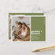 Celebra la temporada de gratitud con esta tarjeta de foto de Grfatídico + Bendito Día de Acción de Gracias en una paleta verde de oliva cálida. Con un moderno diseño dividido con una foto familiar por un lado y sentidos deseos de vacaciones por el otro, esta minimalista tarjeta combina a la perfección elegancia y comodidad. Una manera atemporal de enviar amor, alegría y bendiciones a amigos y familia este Día de Acción de Gracias.