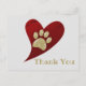 Diga gracias a la persona que pasea a su perro, a la persona que cuida a su mascota o al veterinario con esta postal económica. Esta tarjeta presenta una huella de pata brillante dorada en el centro de un corazón rojo brillante. El corazón tiene una curva elegante y una textura roja pintada. La parte posterior ofrece mucho espacio para agregar fotos y texto si lo desea. "Gracias" se puede personalizar fácilmente.