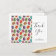 Una tarjeta postal de agradecimiento de cumpleaños con un patrón adorable de macarons en muchos colores diferentes con un patrón de lunares tenue detrás.
