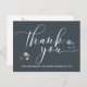 Esta hermosa postal presenta "gracias" con caligrafía moderna y flores gráficas superpuestas en azul oscuro. En el reverso de la postal, personalice el mensaje o elimine el texto para un mensaje escrito a mano. Envíeme un mensaje si necesita ayuda o tiene alguna solicitud especial.