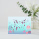 Agradece a amigos, familiares y invitados con esta tarjeta de agradecimiento de baby shower. ¡Celebra a la bebé con un divertido tema de animales marinos bajo el agua! Perfecto para un baby shower de playa o simplemente un tema de agua natural. Medusas, ballenas, peces, caballitos de mar, estrellas de mar, conchas y burbujas en azul turquesa, púrpura y rosa coral. La tarjeta de agradecimiento de Baby Shower de niña es ideal para la niña femenina y femenina con un toque de moda y estilo moderno.