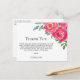Esta linda tarjeta de agradecimiento para el Baby Shower de esta niña presenta flores de acuarela en tonos de rosa con follaje verde. Fácilmente personalizable. Para editar aún más, use la herramienta de diseño para cambiar la fuente, el tamaño o el color de la letra. Debido a que creamos nuestro arte, no encontrará esta imagen exacta de otros diseñadores. Acuarela Original © Michele Davies.