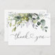 Tarjeta postal de agradecimiento de eucalipto verde acuarela.