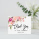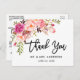 Tarjeta postal de agradecimiento de boda floral rosa con acuarela y letra a pincel moderna