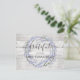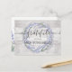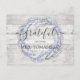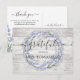 Tarjeta de agradecimiento de despedida de soltera rústica diseñada con hermosa impresión de madera ligera con corona floral de lavanda. Tipografía clásica y oscura gris oscuro. Envíame un mensaje si necesitas ayuda o tienes alguna solicitud especial.