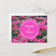 Una foto de la naturaleza que captura un hermoso lecho de flores rosadas proporciona el fondo para esta tarjeta postal de agradecimiento a los invitados de la boda. Las pequeñas flores y capullos están acompañados de hojas de color verde oscuro. Esta nota de agradecimiento a los invitados de la boda económica se puede personalizar fácilmente con los nombres de la novia y el novio y un mensaje especial.