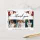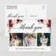 Tarjeta postal de agradecimiento de 3 fotos de boda con flores de burgundy acuarela y caligrafía moderna