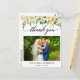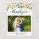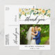 Tarjeta postal de agradecimiento de foto de boda en caligrafía moderna floral amarilla