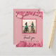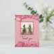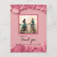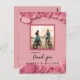 Tarjeta postal de agradecimiento de boda inspirada en Barbiecore con flores de papel recortado simuladas en 3D monocromáticas rosas con foto.