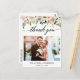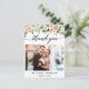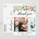 Tarjeta postal de agradecimiento de foto de boda floral rosa acuarela con caligrafía moderna