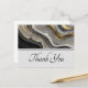 Tarjeta postal de agradecimiento con un diseño abstracto con un patrón de geoda de ágata. Dorado, gris, blanco y negro se mezclan formando olas elegantes de color. Perfecto para transmitir un aire de clase y elegancia.