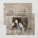 Plantilla de tarjeta postal de agradecimiento de graduación de escuela secundaria de madera rústica de campo con presupuesto limitado. Letra negra con borde blanco. Personalice su tipografía. Imagen con derechos de autor de Marg Seregelyi Photography.