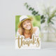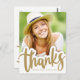 Enorme "Gracias" escrito a mano en una nube blanca que se superpone a su foto de graduación (o cualquier foto). La sombra paralela en la nube le da un aspecto tridimensional (aunque sea plana). Personalice agregando sus datos, mensaje de agradecimiento y foto frontal vertical. Utilice el mensaje de ejemplo o escriba su propio mensaje. Esta tarjeta de agradecimiento audaz y elegante es perfecta para bodas, graduaciones y eventos similares.