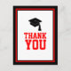 Di las gracias con esta tarjeta postal de agradecimiento de graduación con tema rojo y negro. Cuenta con 'Gracias' en rojo y una gorra de graduado negra rodeada de un borde negro y rojo. La parte trasera está en blanco para tu mensaje personal.