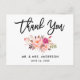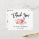 Tarjeta postal de agradecimiento de boda con letra Brush Script moderna y acuarela floral rosa