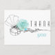 Tarjeta de agradecimiento funeral/pérdida floral acuarela turquesa y floral dibujada a mano. Mensaje en la parte posterior.