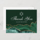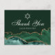 Un chic verde oscuro y ágata dorada decora el lateral de esta moderna tarjeta de agradecimiento de Bar Mitzvah. Personalice con su nombre debajo de la Estrella de David. Tarjetas perfectas para una familia judía que celebra a un niño siendo llamado a la Torá.