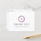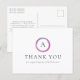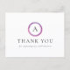 Tarjeta postal de agradecimiento de negocios moderna con un diseño simple pero profesional con su monograma dentro de un círculo rosa y púrpura.