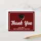 Esta moderna tarjeta de agradecimiento personalizada de graduación en granate y blanco presenta un clásico agradecimiento manuscrito sobre el nombre de tu escuela secundaria o universidad para la promoción de 2025. Personaliza con tu nombre debajo del gorro de graduado negro para obtener excelentes tarjetas de agradecimiento de graduado personalizadas.