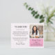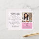 Esta Tarjeta Postal de Agradecimiento de Bienes Raíces Personalizados es la forma perfecta para que los profesionales de bienes raíces expresen su gratitud a los clientes mientras dejan una impresión duradera. Con un fondo suave de color rosa pastel, esta tarjeta postal irradia elegancia y calidez, lo que la hace ideal para un mensaje personal y profesional. Viene con una plantilla de mensaje de agradecimiento prediseñada que se puede personalizar fácilmente para adaptarse a tu tono y estilo. La tarjeta postal también incluye un espacio dedicado para una plantilla de foto del agente, lo que te permite mostrar tu imagen amigable y profesional, mejorando tu conexión con los clientes. Además, se integra una plantilla de código QR en el diseño, lo que permite un acceso fluido a tu sitio web, redes sociales o reseñas, lo que ayuda a mantener el compromiso y fomentar la confianza.