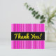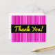 El diseño de esta postal presenta un patrón de rayas finas en distintos tonos de colores, como el magenta y el rosa. También muestra el mensaje "¡Gracias!" en el frente en un texto similar a un guión amarillo, junto con un mensaje personalizado de gratitud en la parte de atrás.