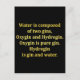 El texto amarillo sobre un fondo negro da un giro humorístico a la composición del agua, reemplazando el hidrógeno y el oxígeno por "Hidrogina" y "Oxígeno". Este juego de palabras sugiere que Oxygin es gin puro, e Hidrogin es gin y agua.