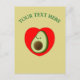Un aguacate al estilo personalizado en un corazón rojo. Todo el dibujo digital. La imagen, el texto y el color de fondo se pueden personalizar para crear un producto único.