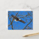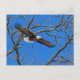Un águila calva brillante se eleva antes de ramas de invierno desnudas, respaldado por un cielo azul vibrante