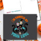 Estos gatos de cráneo de azúcar no son solamente miedosos —están irremediablemente embrujados por el amor. Esta original postal de Halloween presenta dos esqueletos de ojos anchos y un pequeño ratón muy valiente, con la frase "Estoy atormentado por tu amor" destacando en un atrevido fondo gris oscuro. Es la manera más perfecta de enviar el afecto de Halloween a alguien que se lleva tu lado espeluznante-dulce. La parte trasera incluye un simple mensaje "HAPPY HALLOWEEN", dejando espacio para su propia nota inquietante (o adorable).