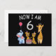 Postal Ahora tengo 6 años, 6 años, cumpleaños en el zooló