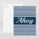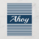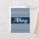 Diseño de texto Ahoy con decoración de rayas azul marino y blanco