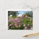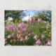 Eine Wiese voller blühender Akeleien unter alten Apfelbäumen