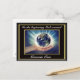 Este génesis vintage cristiano uno en el principio que Dios creó. Con una postal de marco negro y dorado. Tiene un colorido y vibrante diseño de espacio cristiano. Con un hermoso planeta en la mano. Parecen nubes espaciales. El Génesis de versículos de la Biblia, uno en el principio que Dios creó.