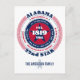 El Alabama, Montgomery, AL, Patriótico, Monograma Postcard tiene un diseño de tipografía circular con colores de bandera estadounidense roja, blanca y azul. Puede personalizarlo con su propio monograma inicial y nombre en la plantilla.