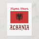 Postcard on back para tu mensaje personalizado. La parte delantera muestra la bandera albanesa con la palabra ALBANIA escrita a continuación, en los colores de la bandera. Encima hay un lugar para un nombre en letras rojas, para hacer una tarjeta genial. Ideal para billetes de vacaciones o en cualquier momento.