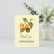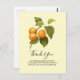 Tarjeta de agradecimiento con un dibujo de acuarela de 3 albaricoques naranjas colgando de una pequeña rama marrón cubierta de hojas verdes. Tiene un aspecto botánico vintage.