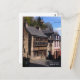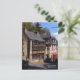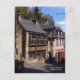 Encantadores edificios de la época medieval con postigos de ventanas pintadas de colores vivos en una empinada calle adoquinada en la ciudad de Dinan, Bretaña, Francia. Postal fotográfica de viaje de la histórica Francia.