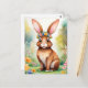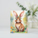 Celebra el Día de Pascua y el momento de la felicidad de primavera con este diseño "Alegre conejito marrón 1". La imagen muestra un pequeño y alegre conejito marrón con una corona floral en una tranquila pradera.