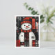 Esta encantadora postal de snowman presenta un diseño rojo, negro y blanco lúdico en una combinación única de arte folclórico y pop. Ideal para disfrutar de unas vacaciones alegres con un toque festivo y moderno.