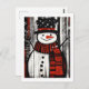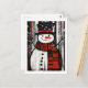 Esta encantadora postal de snowman presenta un diseño rojo, negro y blanco lúdico en una combinación única de arte folclórico y pop. Ideal para disfrutar de unas vacaciones alegres con un toque festivo y moderno.