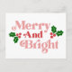 Ilumina tu temporada de vacaciones con este diseño "Alegre y Brillante". Con elegante tipografía en tonos suaves de rosa y rojo, acentuado con hojas y bayas de acebo clásicas, este diseño captura la alegría y calidez de las vacaciones. Perfecto para una variedad de productos de Zazzle como camisetas, tazas y adornos, es ideal para agregar un toque festivo a tu decoración o regalar a seres queridos.