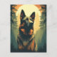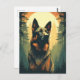 Postal Alemán-Pastor en el bosque durante la puesta de so