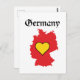 ¡Comparte tu amor por Alemania con esta postal de Alemania! La postal está diseñada con los colores de la bandera alemana y cuenta con un corazón dentro del mapa.
