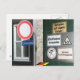 Tarjeta postal divertida con escudos para prohibiciones de Alemania tremendamente peligrosa. Una sorpresa bonita de la vacación en Alemania como postal o a víspera de todos los santos o a la Walpurgisnacht.