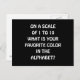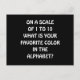¿Aquí? s un arrancador de la conversación. ¿? ¿En una escala de 1 a 10 cuál es su color preferido en el alfabeto?? Compruebe hacia fuera este divertido crean para requisitos particulares en las camisetas, el camisetas, las tazas, los pijamas, los regalos y la otra ropa.