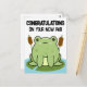 Celebra un nuevo comienzo con esta adorable tarjeta postal de felicitación por una nueva casa con una rana en una hoja de nenúfar. Con una encantadora rana descansando en una hoja de nenúfar, esta encantadora tarjeta es perfecta para dar la bienvenida a alguien a su nuevo hogar. Con colores vibrantes y un diseño divertido inspirado en la naturaleza, es una forma caprichosa de enviar tus mejores deseos para un nuevo comienzo. Ya sea para una inauguración o un nuevo apartamento, esta tarjeta postal con tema de rana seguramente les hará sonreír mientras se instalan en su nuevo espacio.