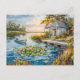 cabaña de pescadores serena a orillas del lago, con barca de madera y nenúfares flotando en el tranquilo lago, pintada en un encantador estilo de pintura al óleo.