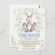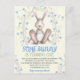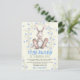 Esta dulce postal de invitación a la fiesta de cumpleaños del conejo incluye un lindo conejo ilustrado rodeado por un marco de flores azules. La frase "Un conejito" está pintada en una acuarela azul. El texto "Está cambiando uno" puede cambiarse para que se ajuste a cualquier año de cumpleaños. En la parte posterior, agregue su dirección de retorno y cualquier texto adicional si lo desea.