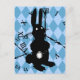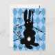 Esta imagen tiene una silueta del conejo de Alicia en el país de las maravillas sosteniendo un reloj de bolsillo con imágenes de la cara del reloj en el fondo.
