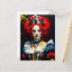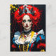 Imaginando a Alicia como la fantasía de la Reina Roja AI generó arte en los colores rojo, azul, amarillo, negro y blanco con manchas de tinta.
